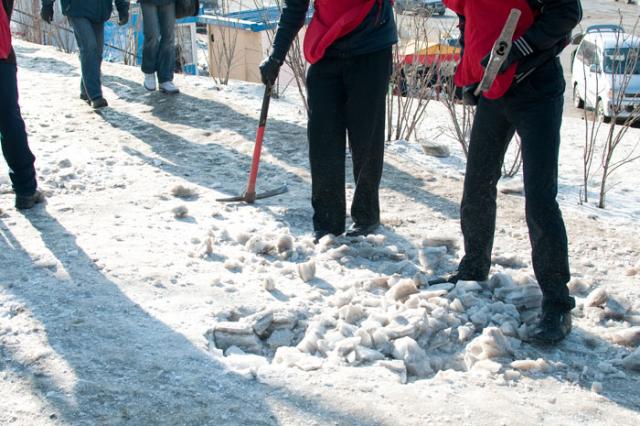 Павел Серебряков: Субботники нужно проводить по мере необходимости Активные жители Первореченского района Владивостока поддержали инициативу властей города и подключились к борьбе с гололедом. 30 молодых активистов сегодня очистили ото льда часть тротуаров в районе транспортной развязки на Баляева и на улице Сабанеева.