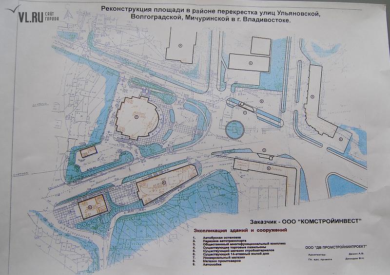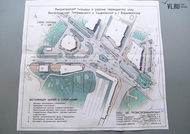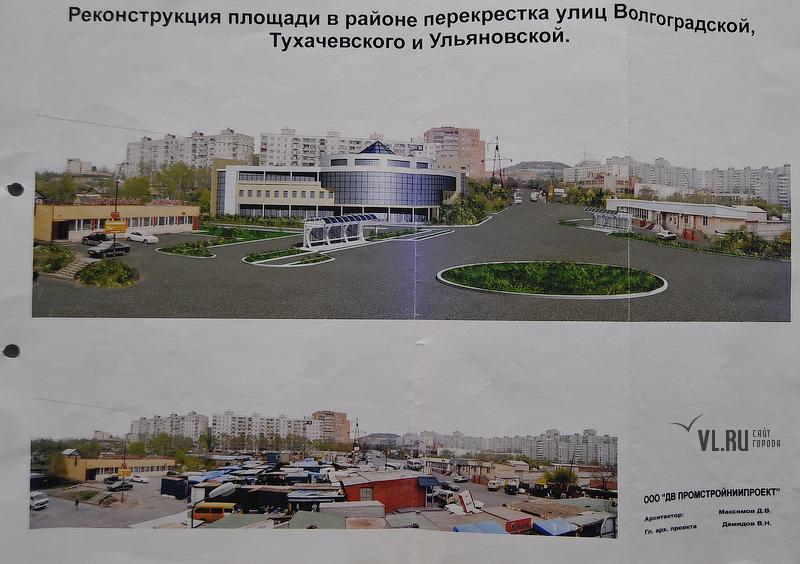 Еще в 2002 году представители Управления градостроительства и архитектуры городской администрации обратились к руководителям компаний, расположенных в районе пересечения улиц Ульяновской, Волгоградской, Мичуринской и Тухачевского, с просьбой разработать план развития этого района. Предпринимателям было предложено убрать ларьки с площади перед магазином "Стройматериалы" и близлежащей территории, а вместо них рядом возвести современные торговые комплексы и проработать реконструкцию проезжей части с учетом строительства разворотного кольца для автобусов. План был разработан и выполнен архитекторами "ДВ Промстройниипроект". В 2006 году проект реконструкции площади был утвержден Управлением архитектуры и градостроительства городской администрации.