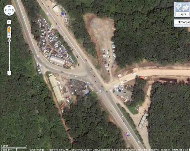 Фотография перекрестка с Google.Карты