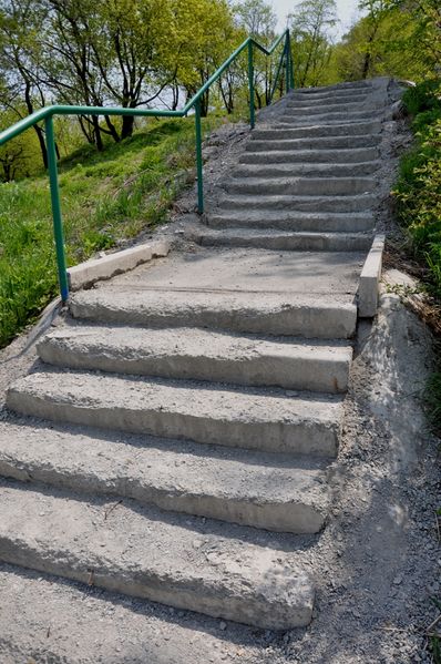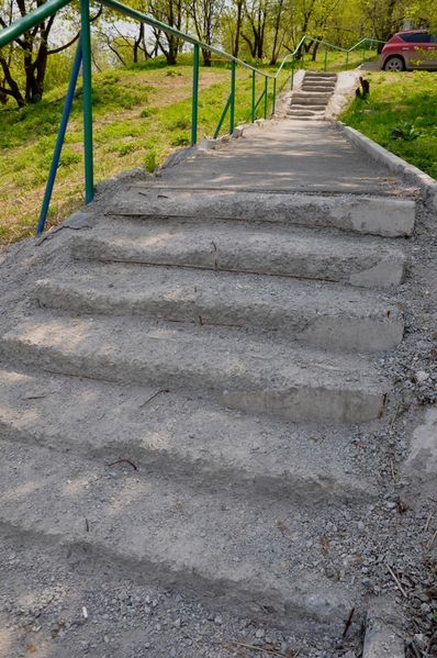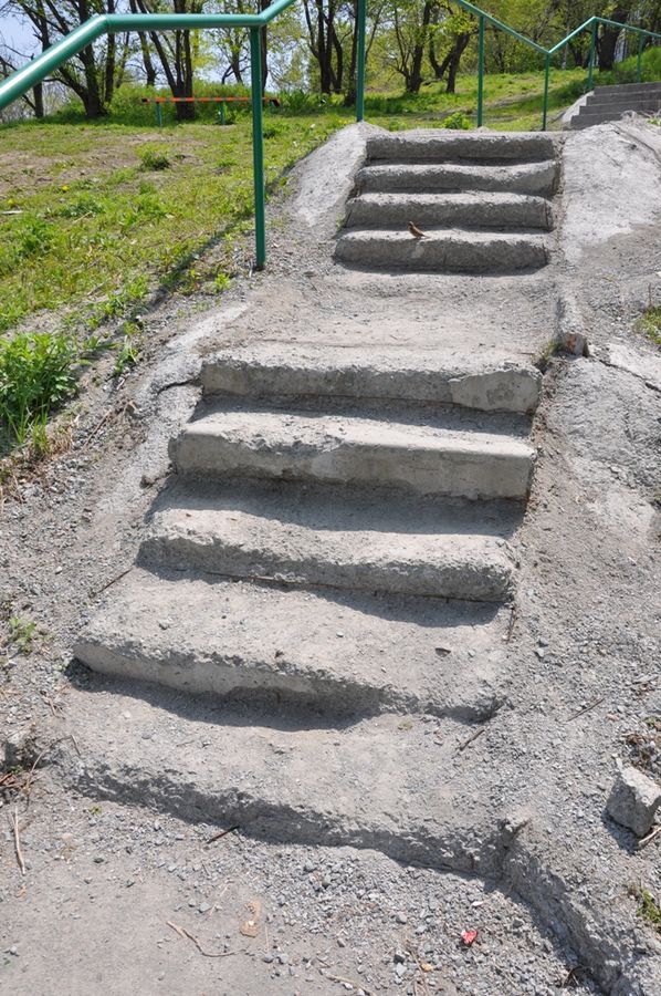 Отметим, что лестница находится в таком ужасном состоянии, что передвижение по ней не просто неудобно, но и опасно. Несмотря на то, что с момента ее «ремонта» прошло всего полтора года. Почти все лестничные марши уже разрушены или осыпались.