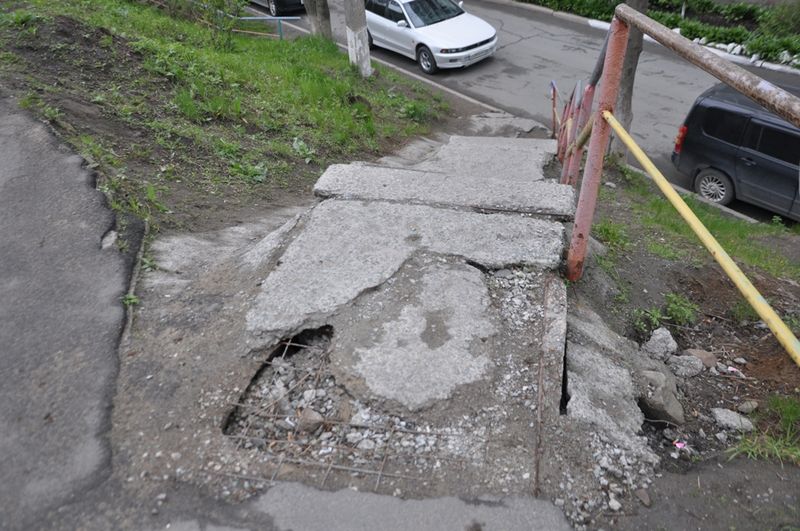 Жителей домов по улицам Сабанеева,13 и Тухачевскго,56 уже давно волнует проблема разрушенных лестниц: «Ходить невозможно, ноги ломать, да и только», - возмущаются жильцы. Обстановка прояснилась с ответом депутату Думы Павлу Серебрякову на запрос по данной проблеме заместителю главы администрации Владивостока Павлу Тарасенко.