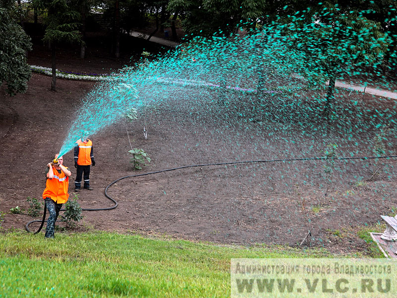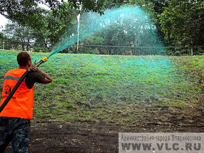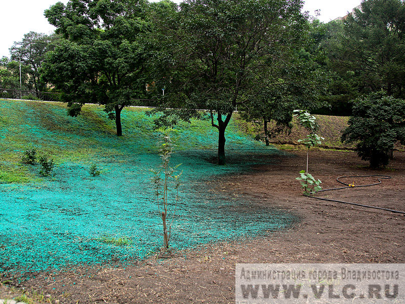 Впервые метод гидропосева во Владивостоке использовала одна из строительных компаний на разделительной полосе участка дороги от Второй Речки до остановки "Фабрика Заря", однако опыт оказался неудачным. Как отмечают специалисты, там семена не прижились в связи с тем, что подрядная организация не подготовила должным образом почву.