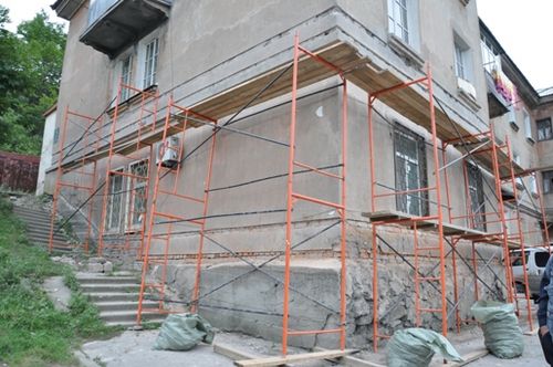 Начались восстановительные работы дома на Руднева,5 Сегодня подрядная организация ООО "Антарктида" приступила к усилению наружных стен здания жилого дома №5 по ул.Руднева. В ходе работ планируется удалить существующий штукатурный слой и укрепить фасад металлическими пластинами и анкерами. Затем поверхность фасада будет обработана штукатурным составом и покрашена.