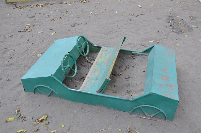 Данную площадку установили несколько лет назад. За это время игровой комплекс успел «поизноситься»: сломалась лесенка центральной «горки»; качели, лавочки, песочница требуют уже ремонта.
