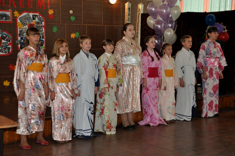 Звучали слова особой благодарности нынешнему директору школы Любови Сулиминой, которая работает в ней уже 20 лет. Именно с ее приходом школа стала углубленно изучать японский язык. Ученики постоянно являются призерами олимпиад и конкурсов по японскому языку, и о школе №51 знают поистине во всех префектурах Японии.