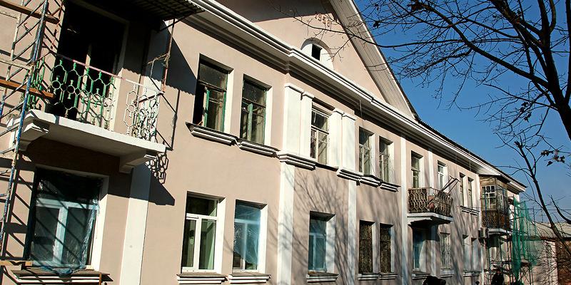 В уцелевшей части дома полностью окрасили фасад, установили каркасы козырьков над подъездами, укрепили крючья для установки подвесных желобов для водостока. Строительные леса уже убрали, в ближайшее время начнется благоустройство территории.