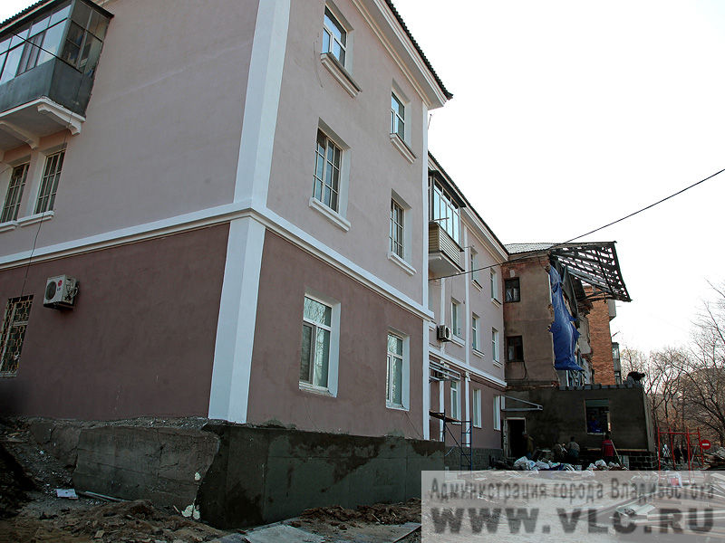 Первый этаж разрушенного дома на Руднева,5 полностью восстановлен Продолжаются работы по восстановлению дома № 5 на Руднева, который частично разрушился в августе нынешнего года. Специалисты заново возвели наружные стены в разрушенной части дома из андезито-базальтовых блоков. Уже сделан первый этаж и уложены перемычки над оконными проемами, сообщает пресс-служба администрации Владивостока.