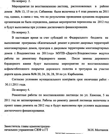 Согласно ответу по состоянию на середину ноября вдоль домов ул. Карбышева,20, 24, 26, 28, 30 за счет субсидий из Федерального бюджета велись работы по демонтажу бордюрного камня. После их окончания должны быть выполнены мероприятия по восстановлению асфальтобетонного полотна т тротуаров.