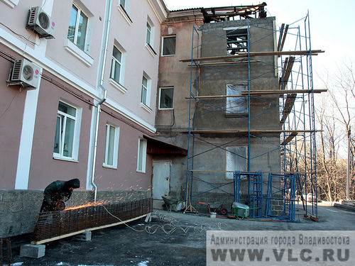 Восстановительные работы дома на ул. Руднева,5 подходят к завершению Завершаются работы в жилом доме на Руднева, 5. Заново из андезито-базальтовых блоков возведены стены трех этажей. Сейчас подрядчики укладывают чердачное перекрытие, сообщает пресс-служба администрации Владивостока.