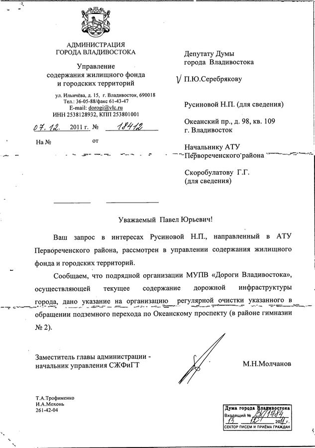 Жители района обратились в приёмную Павла Серебрякова помочь решить проблему уборки и реконструкции подземного перехода к гимназии №2. Стоит отметить, что в приёмную депутата ранее по данной теме жители не разу не обращались. Это обращение стало первым и потребовало иного подхода к решению проблемы.