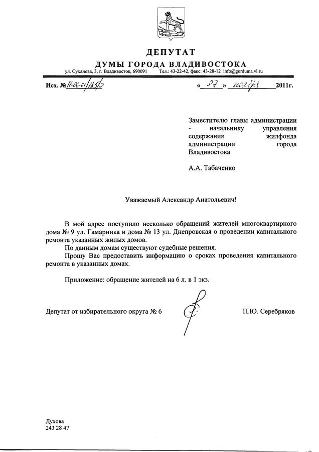 С проблемой жители дома обратились к депутату не случайно: уже существует судебное решение на ремонт дома, но к нему до сих пор так никто и не приступал. Поэтому жители обратились в приемную Павла Серебрякова разобраться в ситуации.