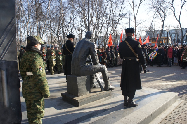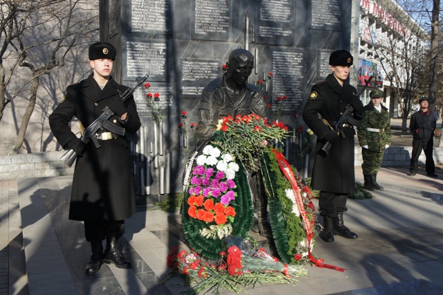 Память воинов-интернационалистов почтили сегодня у памятника приморцам, погибшим в локальных войнах и военных конфликтах![]() Торжественное мероприятие, посвященное Дню памяти о россиянах, исполнявших служебный долг за пределами Отечества, и 23-й годовщине вывода советских войск из Афганистана, прошло сегодня у памятника приморцам, погибшим в локальных войнах и военных конфликтах. Также сегодня ветераны боевых действий поделились историями из своего военного прошлого с молодежью на уроке мужества, сообщает корр. РИА PrimaMedia. В торжественном митинге и возложении венков и цветов у памятника приморцам, погибшим в локальных войнах и военных конфликтах у Приморского краевого Дома Молодежи приняли участие ветераны боевых действий, семьи погибших бойцов, военнослужащие, представители администрации Владивостока, депутатского корпуса, администрации Приморского края, члены общественной организации ветеранов боевых действий "Контингент", Приморского краевого отделения всероссийской общественной организации ветеранов "Боевое братство", школьники и представители общественности. Возложение венков Желающих почтить память воинов-интернационалистов собралось очень много. По словам члена общественной организации ветеранов боевых действий «Контингент» и участника боевых действий Павла Гетмана, это показатель того, что жители Владивостока помнят о событиях афганской войны и чтят героев-«афганцев». Желающих почтить память воинов-интернационалистов собралось очень много После митинга ветераны боевых действий под руководством председателя ОО «Контингент» Сергея Кондратенко провели урок мужества для активной молодежи Владивостока. Школьники, студенты колледжей и военнослужащие с большим интересом и вниманием слушали ветеранов. Ветераны рассказывали, что им пришлось пережить для спасения себя, товарищей и своей семьи. И каждая рассказанная история была частью жизни целой страны. Урок мужества для молодежи Первореченского района «Родина начинается с семьи, и, идя на войну, мы, прежде всего, защищаем свои семьи. Именно это вселяет в нас мужество, стремление преодолевать все трудности, независимо от опасности, свистящих над головой пуль, холода и всего прочего, - говорит член общественной организации ветеранов боевых действий «Контингент» Павел Гетман. - Но стоит помнить, что и сегодня мы должны быть настоящими патриотами. Ведь патриотизм, это, прежде всего, любовь к своей семье, дому, в котором ты живешь, городу. Каждый может взять на себя ответственность защищать все это. А начать можно с простого: не мусорить там, где живешь, остановить товарища, когда перед тем стоит соблазн попробовать наркотики, быть внимательнее к соседям, помогать старикам. Чтобы любить Родину, война совсем не обязательна. И сегодня любой может быть героем». После урока мужества прошла встреча-чаепитие родственников погибших участников боевых действий, где в теплой домашней обстановке матери погибших солдат и ветераны вспомнили о тех, кто погиб на войне в Афганистане. По их признанию, они увидели в ребятах, сидящих в зале своих детей, таких же молодых и родных, но жизни которых унесла война, и почувствовали себя в кругу семьи.