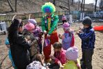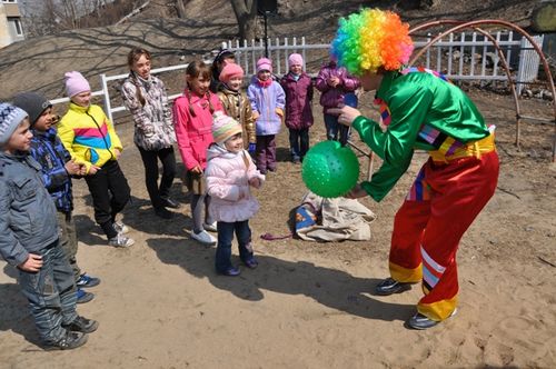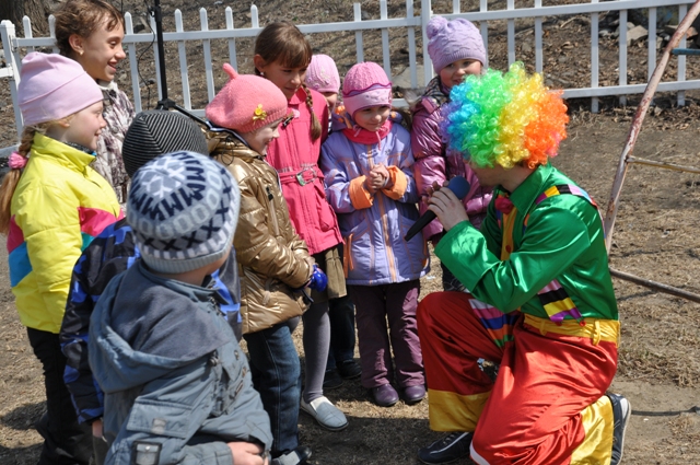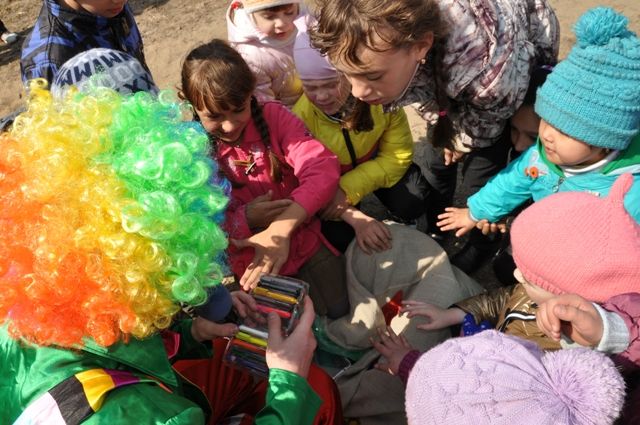 Радости малышей не было предела, они визжали, смеялись и участвовали во всех играх, предлагаемых клоуном. Вместе с ним дети танцевали, отгадывали загадки и делали себе «татуировки» специальными разноцветными карандашами.