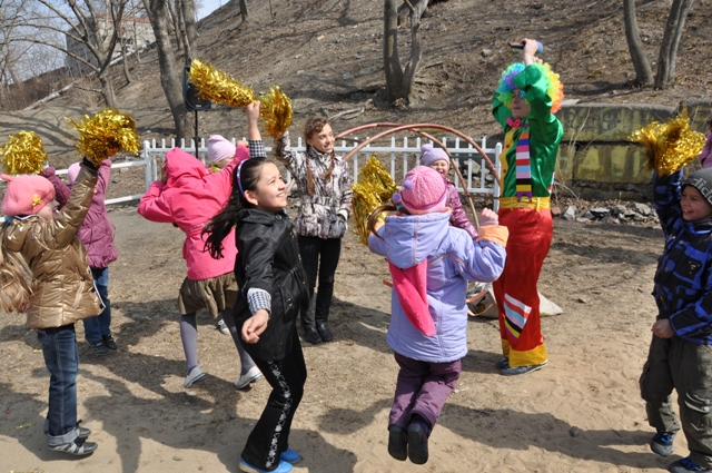 Праздник получился двойным: взрослые установили детскую площадку и организовали веселое представление с клоуном, конкурсами и подарками. Улица озарилась веселой музыкой и к новенькой цветной детской площадке сбежались ребятишки с ближайших дворов.