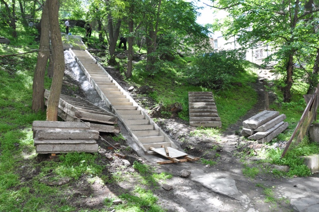 Лестничные марши устанавливают в Первореченском районе![]() Ремонт лестниц начался во всех районах Владивостока, в том числе и в Первореченском. Все лестницы социально значимы, одни ведут от остановок общественного транспорта в жилые микрорайоны, другие - к образовательным учреждениям, детским садам и школам, сообщает пресс-служба администрации Владивостока. Как сообщили в управлении содержания жилищного фонда и городских территорий администрации Владивостока, в этом году ремонт лестничных маршей проводится в несколько этапов. «Итоги ремонта лестничных маршей нас в прошлом году совсем не порадовали – было отремонтировано всего семь лестниц, вошедших в первый этап работ, - говорит депутата Законодательного Собрания Приморского края Павел Серебряков. В этом году работы ведутся более активно, причем в первую очередь ремонтируются наиболее «наболевшие» лестничные марши. Когда в прошлом году, я инспектировал работы, обратил внимание, что некоторые лестницы разрушены уже до такой степени, что по ним возможно только скатываться, и это в лучшем случае. В худшем – у большинства торчат арматуры, и в темноте по ним ходить примерно также, как по «полосе препятствий». Все подобные лестницы были учтены и внесены в план ремонта на этот год. Хочется надеяться, за необходимый период администрации города удастся отремонтировать все запланированные лестничные марши. В любом случае я буду контролировать ход всех работ». Подрядная организация в Первореченском районе уже приступила к ремонту лестничных маршей по ул. Днепровской, 55, Волховской, 2, Сабанеева, 11, 13, 15, Руднева, 1. Строители демонтируют старые разрушенные конструкции, завозят материалы и готовят площадку для установки новых ступеней. ул. Днепровская, 55 Еще не отремонтированная лестница на ул. Волховская,2 ул. Ильичева,5