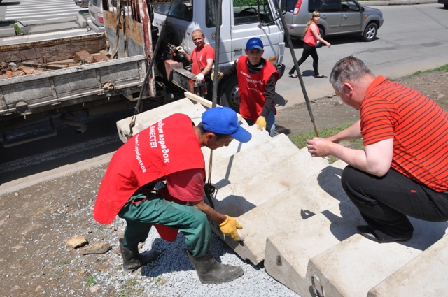 Сегодня специалисты Павла Серебрякова решили данную проблему: установили лестничные марши и забетонировали основание. После того, как бетон возьмется, на лестнице оборудуют перила.