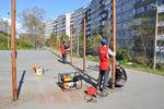 Сейчас рабочие закончили работы по натяжке «рабицы», и дети снова смогут играть на площадке.