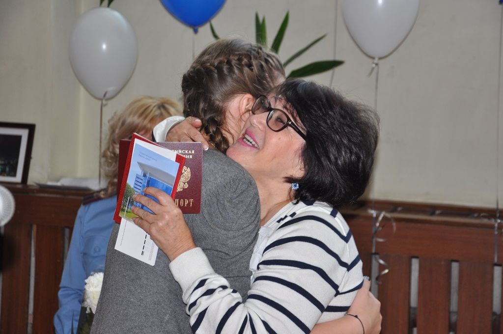 Юным жителям Владивостока торжественно вручили паспорта в День Конституции РФ![]() Юным жителям Первореченского района Владивостока торжественно вручили паспорта в День Конституции РФ. Главный в жизни документ получили 18-ть первореченцев в Доме Молодежи, где организаторы устроили праздничный концерт, сообщает корр. РИА PrimaMedia. Паспорта получили 18-ть юных жителей Первореченского района. Поздравить их с этим важным событием в жизни пришли и.о. секретаря регионального политсовета партии «Единая Россия» Людмила Талабаева, депутат Законодательного Собрания Приморского края Павел Серебряков и депутаты Думы Владивостока Дмитрий Ямщиков и Юрий Корсаков. «Очень хочется, чтобы эти ребята и девчонки гордились нашей страной, потому что через несколько лет мы им ее вручим, а также политическую, экономическую и нравственную ситуацию. Мы будем надеяться, что они примут эту эстафету и будут всегда заботиться о мощи нашей великой России, – говорит и. о. секретаря регионального политсовета партии «Единая Россия» Людмила Талабаева. - Подрастающее поколение всегда должно помнить, в какой оно живет стране, гордиться ею, не забывать мужество наших дедов и отцов, историю нашего великого государства. И очень важно сделать так, чтобы молодежь всегда шла по жизни с гордостью, что родилась и живет в великой Российской Федерации». Людмила Талабаева вручает паспорта Стоит отметить, что первый и главный в жизни документ, а также красочное издание Конституции РФ в Первореченском районе вручают уже больше двух лет, и инициатором этого важного события является местное отделение партии «Единая Россия» и миграционная служба района. Депутат Законодательного Собрания Приморского края Павел Серебряков обратился к родителям детей. «Это важный этап в жизни вашего ребенка. До этого дня вы прививали ему семейные ценности, а сегодня ему пора задуматься о ценностях государственных – о нашей Родине, – говорит Павел Серебряков. - Слова россиянин должно звучать гордо из уст вашего ребенка, и когда он это будет произносить, должен гордиться этим. Не забывайте о патриотизме, сегодня это очень важно в формировании характера и мировоззрения подростка. Ведь наша Родина иметь очень давнюю историю с трагическими и торжественными моментами. Все это ребенок должен знать, ориентироваться и гордиться историей своей страны и участвовать в формировании ее будущего. Павел Серебряков вручает паспорта Обычно вручения проходят в первореченском ЗАГСе, но на этот раз в честь Дня Конституции его провели в Приморском Доме Молодежи. Там в промежутках торжественной церемонии ребят не только поздравили с получением такого важного документа, как паспорта, но и показали небольшую концертную программу творческих коллективов Приморского Дома Молодежи. Также со словами поздравлений и пожеланий к школьникам обратился и начальник территориального подразделения УФМС России по Приморскому краю в Первореченском районе Владивостока Людмила Ляхович. Она напомнила виновникам торжества, что теперь, получив свой главный документ, они стали полноправными гражданами страны. Людмила Ляхович «Держа в руках паспорт, вы должны помнить и понимать, что вы частица большого интернационального государства, которое имеет свои традиции и историю. Государство, так же как и родители, возлагает на ва