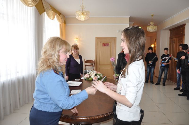 Сотрудники районного ЗАГСа и миграционной службы торжественно вручили учащимся паспорта и поздравили их с этим знаменательным в жизни событием, при этом выразили уверенность, что ребята достойно пронесут звание гражданина Российской Федерации и будут законопослушными гражданами.