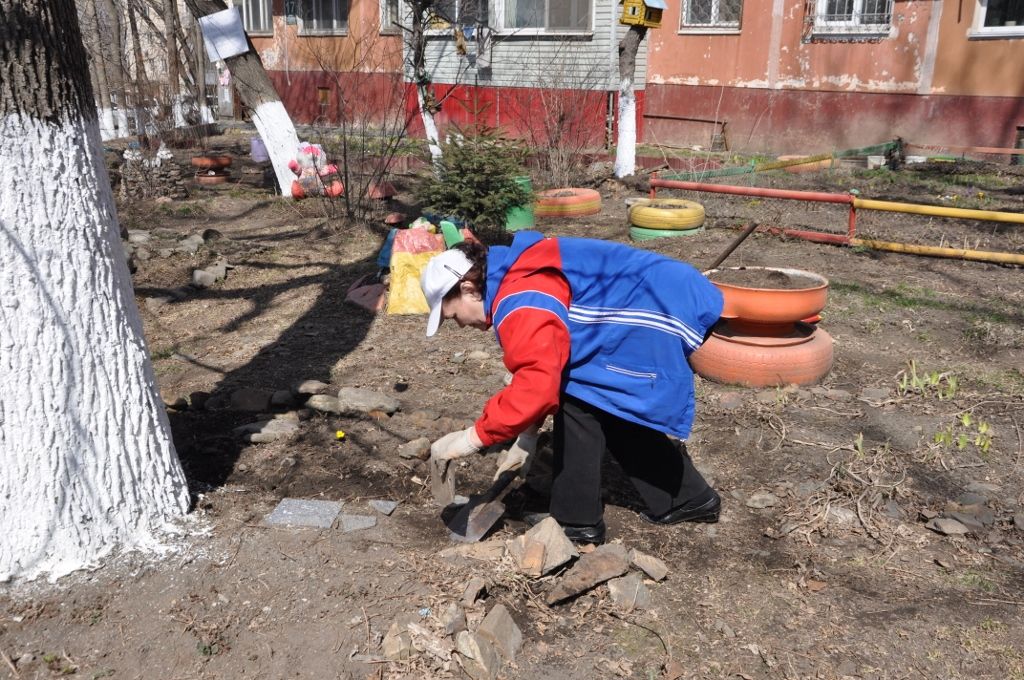 Центральным местом уборки и благоустройства стал сквер ветеранов у здания Администрации района, сообщает корр. РИА PrimaMedia. Высаживать кустарники и деревья пока не стали. По словам опытных садоводов, земля еще не готова. Поэтому этим они займутся на следующих выходных.