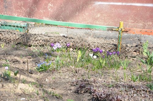 Здесь уже месяц кипит работа, и даже на клумбах показались первые цветы.