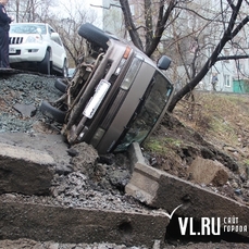 Обрушение произошло в районе полуночи возле дома по проспекту Красного Знамени, 109, когда на Владивосток начался сильный дождь.