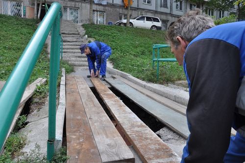 Разрушенную лестницу на Котельникова во Владивостоке отремонтируют![]() Разрушенную лестницу на Котельникова во Владивостоке отремонтируют. По обращению первореченцев к депутату Законодательного Собрания Приморья Павлу Серебрякову яму между пролетами временно заделали досками и укрепили, а ремонтные работы начнутся уже в понедельник, сообщает РИА PrimaMedia. Между жилыми многоквартирными домами №№20 и 22 по ул. Котельникова произошло обрушение межквартального лестничного марша, что представляет опасность для жильцов вышеуказанных домов. Как ранее сообщалось на сайте 1речка.ру, эта лестница была установлена в 2011 году, и уже через пол года начала разрушаться. В период гарантийного срока лестниц в 2012 году комиссией по благоустройству была проведена проверка лестничных пролетов на ул. Котельникова в районе домов №№ 2, 4, 12, 18, 20, 22, установленных ООО "Нивма" по муниципальному контракту, в ходе которой выявлено, что поверхностный слой большинства ступеней разрушен, а сами лестницы находятся в удовлетворительном состоянии. Администрация города направила в адрес застройщика претензию, а позже обратилась в суд с иском. Решением от 23 мая 2012 года Арбитражный суд Приморского края удовлетворил требования истца, обязав застройщика привести лестницы в надлежащее состояние. Судом было установлено, в том числе и на основании экспертного заключения, что железобетонные изделия оказались недостаточно устойчивы к морозам и влаге, а это привело к преждевременному разрушению лестниц. Пятый арбитражный апелляционный суд, рассмотрев жалобы ответчика и третьего лица - производителя ЖБИ, оставил решение суда первой инстанции без изменения. Но подрядчик пока не торопится с исполнением решения суда. А яма между лестничными маршами постоянно растет и грозит обрушением всей лестницы. С этой проблемой жители Котельникова обратились к депутату Павлу Серебрякову, который тут же отреагировал на проблему, в течение часа выехал на место и убедился в серьезности вопроса. Он обратился в администрацию города, где оперативно приняли сигнал. По словам специалистов администрации Владивостока, обрушение лестницы стало следствием разрушения сети ливневой канализации. По этой причине произошло частичное разрушение трубопроводов, а также частичную разгерметизацию смотровых колодцев. И произвести ремонт лестницы возможно только после устранения разрушения трубопровода и ремонта смотровых колодцев. В понедельник начнутся ремонтные работы, пока же сам депутат застелил яму досками.