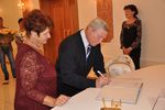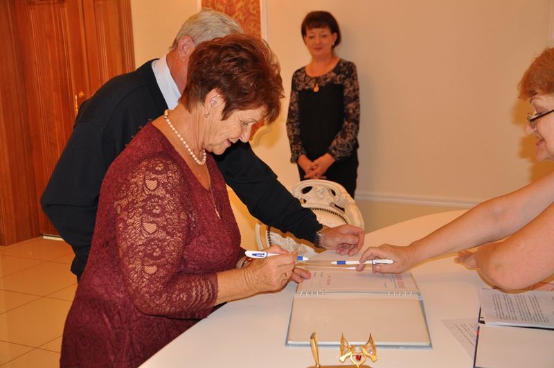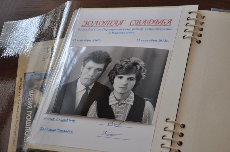 Первореченскую семью Пеньковых торжественно поздравили с Золотой свадьбой![]() Торжественное мероприятие – чествования «Золотых юбиляров» семьи Пеньковых Владимира Павловича и Инессы Свиридовны, зарегистрировавших свой брак 21 сентября 1963 года, прошло в отделе ЗАГС по Первореченскому району. Юбиляры в этот день заново почувствовали себя молодыми и прошли по залу ЗАГСа под марш Мендельсона. Поздравления «молодожены» получили от сотрудников ЗАГСа, первореченского отделения партии «Единая Россия», родных, друзей и депутата Законодательного Собрания Приморского края Павла Серебрякова, который подготовил для семьи подарок, ставший для Пеньковых сюрпризом. «Спасибо вам, что своим примером вы учите молодежь любить и ценить друг друга, заботиться и радоваться каждому дню, прожитому вместе, взаимопониманию и мудрости. Желаю вам, чтобы любовь и нежность всегда наполняли ваш дом радостью, теплом и уютом. Здоровья, благополучия, счастья, и, конечно же, любви!», - зачитали поздравление от Павла Серебрякова. Сотрудники ЗАГСа рассказали всем присутствовавшим про непростой трудовой путь Владимира Павловича и Инессы Свиридовны: «Оба юбиляра приехали строить новый Владивосток из северных районов Приморья: она из Дальнегорского района, он из Тернейского. Познакомились на стройке. Инесса Свиридовна 45 лет отработала на заводе ЖБИ-2, вела большую общественную работу, неоднократно избиралась депутатом районного, потом городского Советов, за многолетний труд и большую общественную работу награждена Орденом трудовой славы третьей степени, множественными почетными грамотами. Владимир Павлович всю жизнь трудился на одном предприятии в СУМ-2, где продолжает трудиться по сей день. Также неоднократно награждался за свой труд множественными наградами. Оба супруга – ветераны труда, их совместный трудовой стаж почти 100 лет. Воспитали дочь, вырастили внучку, помогают воспитывать правнука». В конце торжественной церемонии «молодожены» исполнили для всех гостей вальс.