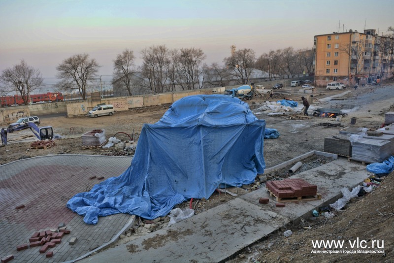 Новый сквер на ул. Овчинникова: зима строителям не помеха Во Владивостоке активно продолжается строительство нового сквера на улице Овчинникова, 18-20. Сейчас подрядчики укладывают брусчатку, устанавливают лестницы, обустраивают площадки под будущие клумбы, сообщили в пресс-службе администрации Владивостока.