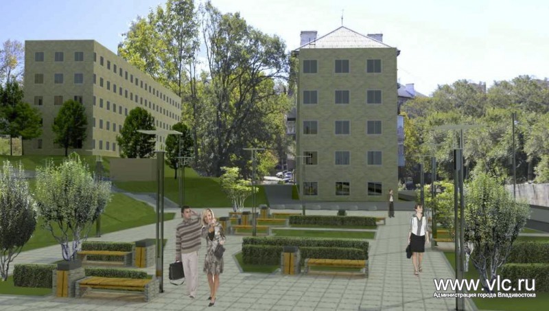 Строительство нового сквера на улице Овчинникова идет по поручению главы Владивостока Игоря Пушкарева.