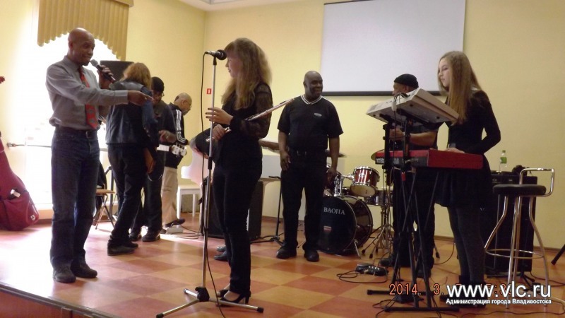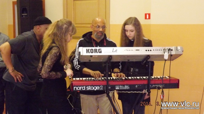 Ученики школы искусств №3 встретились с музыкантами из Америки![]() Творческая встреча воспитанников и педагогов муниципальной детской школы искусств №3 с вокалистом Таем Стивенсом и музыкантами SOULJAZZ-квартета (Нью-Йорк, США) прошла во Владивостоке. Музыканты выступили перед учениками, раздали автографы и провели мастер-класс, сообщили в пресс-службе администрации Владивостока. Поприветствовал присутствующих генеральный консул США во Владивостоке г-н Эрик Холм-Олсен, затем музыканты исполнили ряд собственных и известных джазовых композиций, пообщались со зрителями, охотно ответили на вопросы, открывая секреты своего мастерства. Музыканты пригласили на сцену учащихся эстрадного класса. В исполнении юных артистов прозвучала композиция Дэйва Брубека «Пять четвертей». Далее гости провели мастер-класс - показали ребятам аккорды мирового хита Дюка Эллингтона «Караван» и исполнили его вместе с учениками под аплодисменты зрителей. Американские музыканты высоко оценили подготовку ребят, пожелали научиться еще многому, чтобы в дальнейшем играть свою музыку. Как сообщили в детской школе искусств №3, зрители долго не отпускали артистов, просили исполнить музыкальные композиции на бис, брали автографы, фотографировались. Музыканты смогли уделить внимание каждому, встреча продолжалась около трех часов. Ребята подчеркнули, что встреча с настоящими звездами мирового джаза, искреннее и открытое общение, желание поделиться секретами мастерства запомнится им навсегда. «Мы благодарны Генеральному консульству США во Владивостоке за предоставленную возможность такого мастер-класса и признательны музыкантам - Таю Стивенсу (вокал), Ричарду Каммингсу (клавишные), Рону "Рондью" Монро (бас), Тони Льюису (ударные) и Роберту Тейлору (гитара)», - сказал директор ДШИ №3 Сергей Токарев. К слову, творческая встреча с музыкантами мирового уровня в детской школе искусств школы искусств №3 далеко не первая. Так, в ноябре ребята встретились с джазовым трио Дэвида Хельбока.