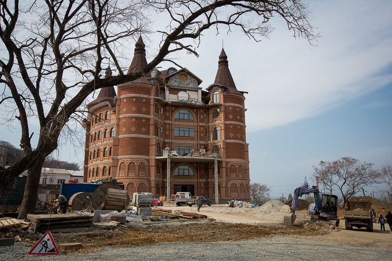 В администрации Владивостока категорически опровергли эти версии. Узнать, кто же возводит "замок" на Первой Речке так и не удалось.