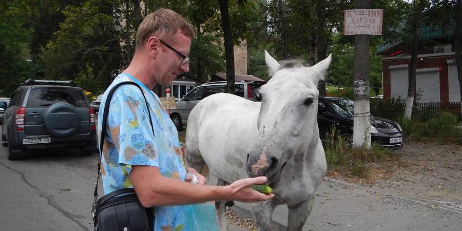 "Конь-потеряшка" бродит по Первореченскому району![]() Потерявшегося коня обнаружили этим утром в своем дворе жители улицы Карьерная, 22 во Владивостоке. На груди животного горожане заметили царапины, кроме того, жеребец был явно голоден. Неравнодушные люди предложили "потеряшке" огурцы и хлеб.
