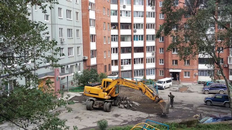 На проездах к жилым домам, на придомовой территории на Котельникова 10-12, Марченко 15 и 32, Вострецова 15 дорожные организации готовят основание под укладку нового асфальта. Рабочие демонтируют старый слой асфальта, готовят щебеночное основание под укладку нового асфальтобетона, подготавливаются к установке бордюрного камня.