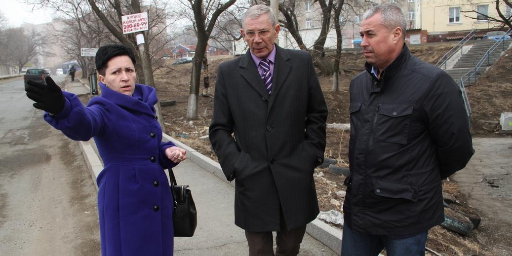 В начале рейда по Первомайскому району заместитель начальника управления дорог и благоустройства администрации Владивостока Максим Акульшин, руководитель проекта Юрий Корсаков и сотрудники ГИБДД встретились с жильцами дома по адресу Приморская, 1.