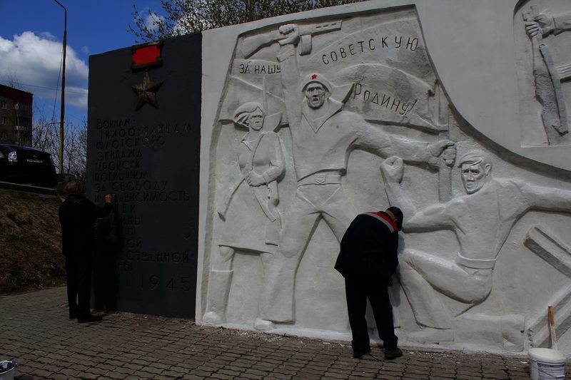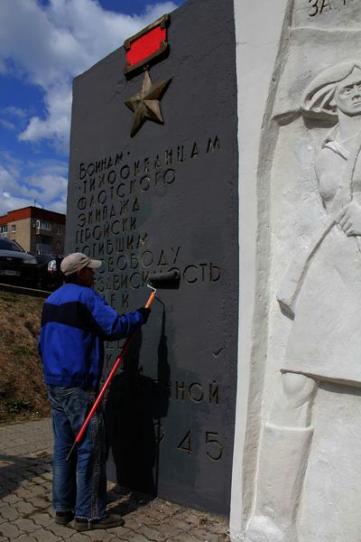 Стелу воинам-тихоокеанцам украсили на субботнике