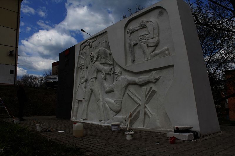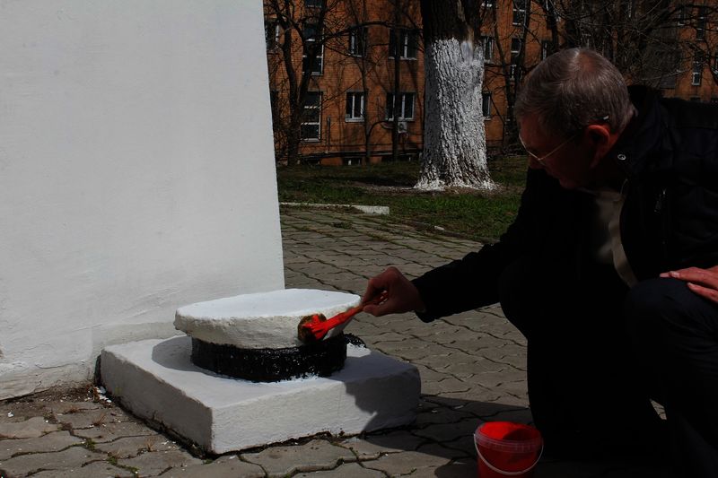 Монумент заиграл свежими красками после того, как участники мероприятия обновили внешний вид стелы.